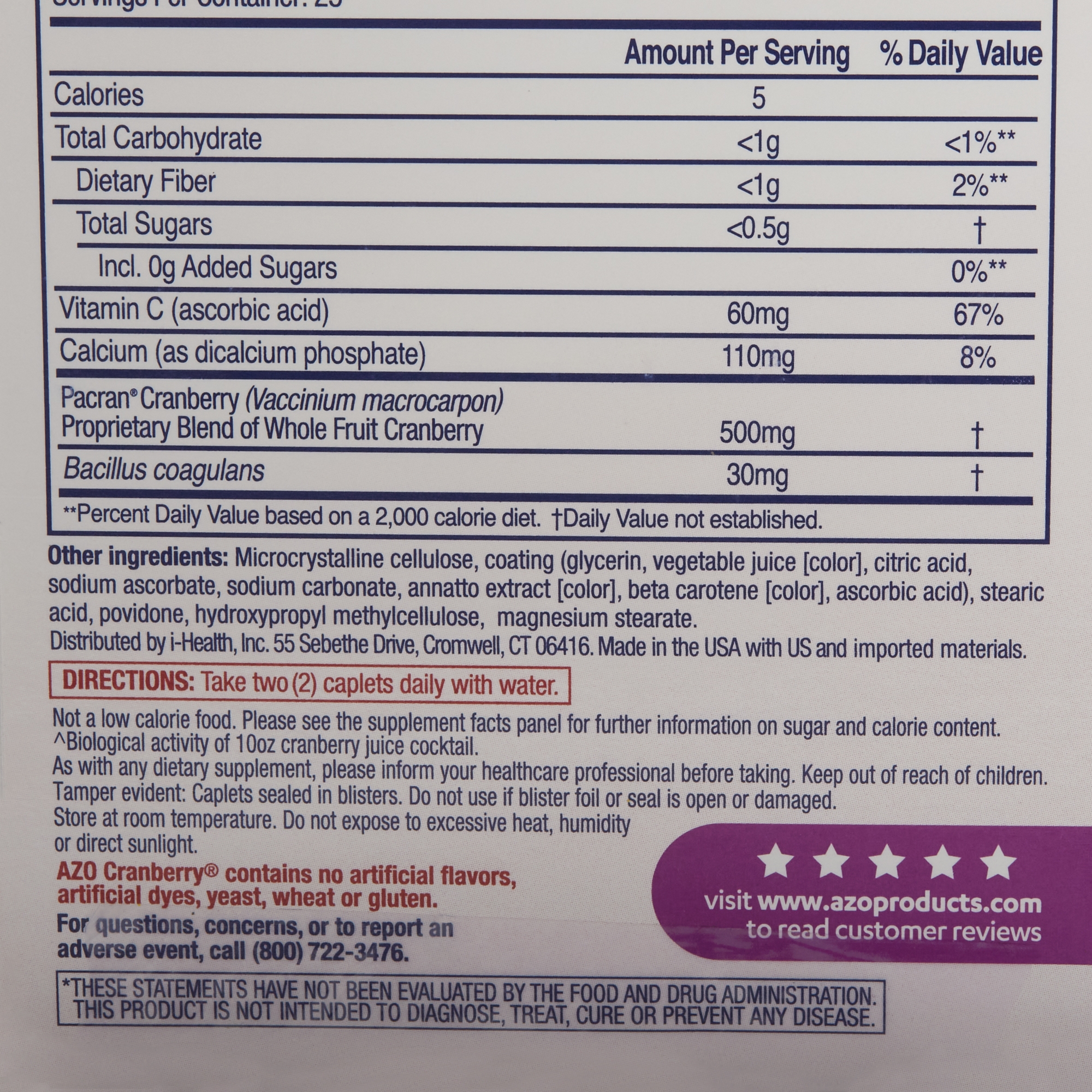 | Active Ingredients | Vitamin C / Calcium / Cranberry / Bacillus Coagulans |