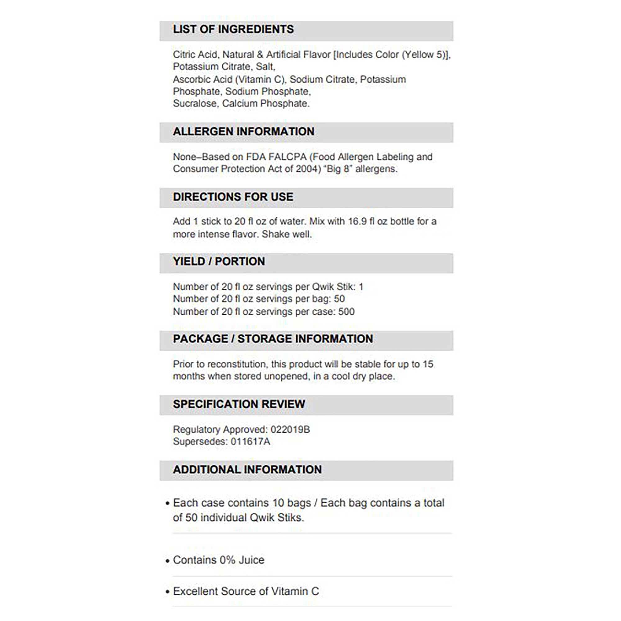 | Calories Per Serving | 5 Calories |