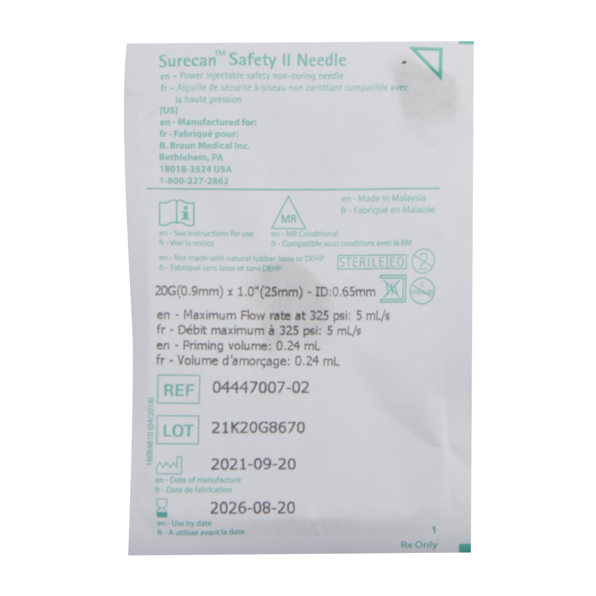 | Priming Volume | 0.25 mL Priming Volume |