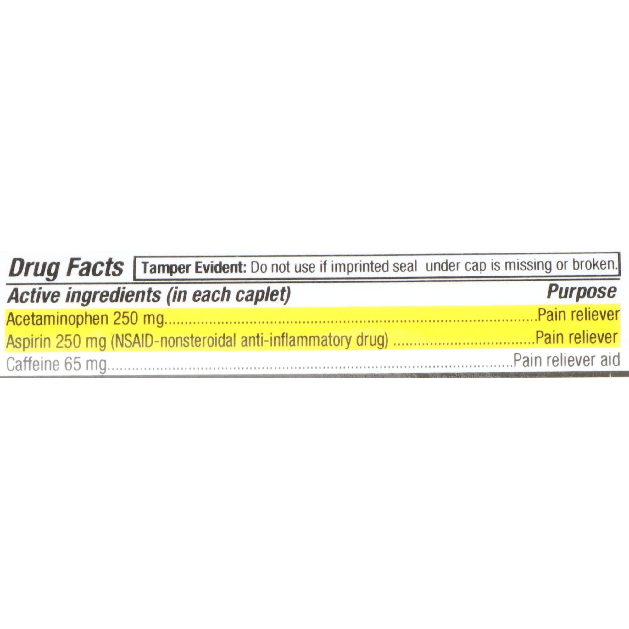 | Active Ingredients | Acetaminophen / Aspirin / Caffeine |