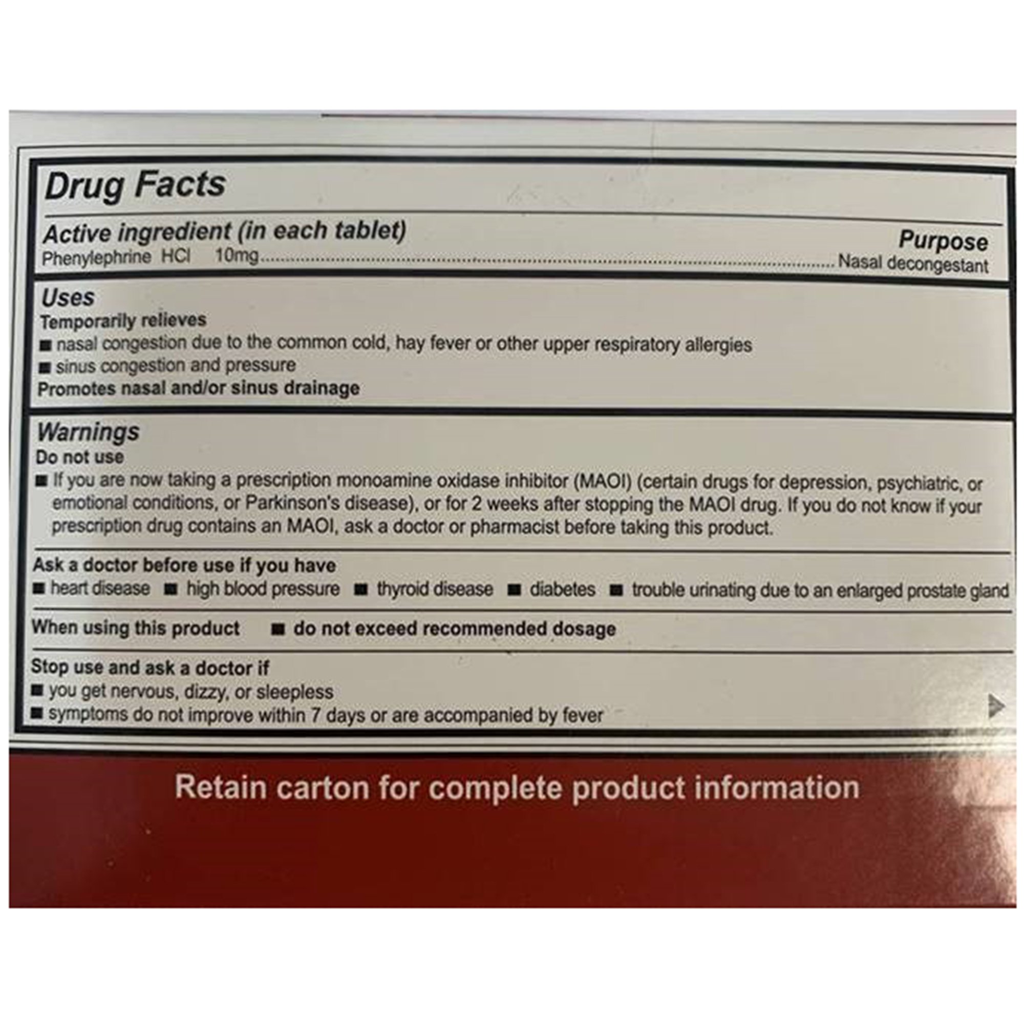 | Active Ingredients | Phenylephrine HCl |