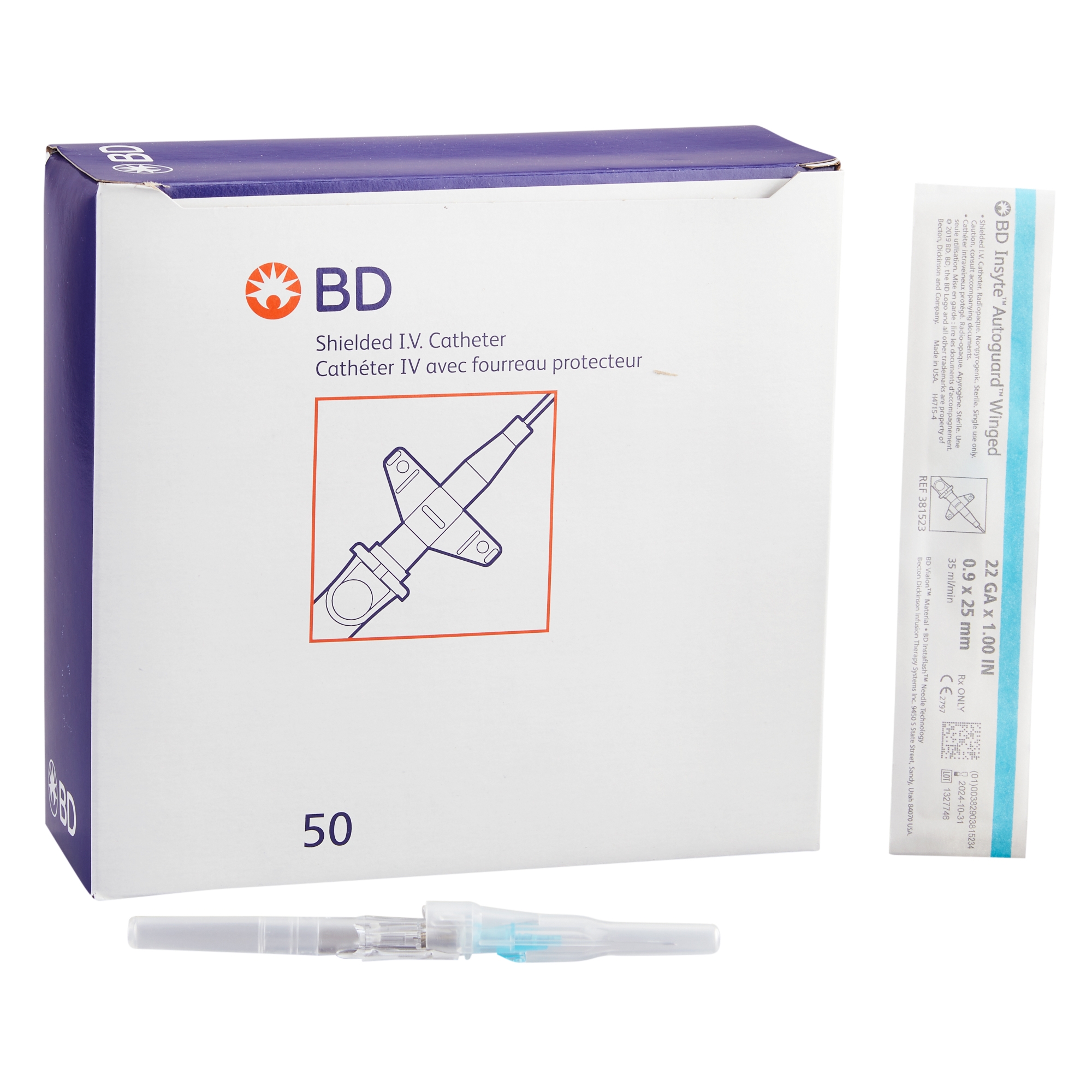 Peripheral IV Catheter Insyte™ Autoguard™ BC 22 Gauge 1 Inch BD Vialon Straight Hub Blood Control Push Button Safety