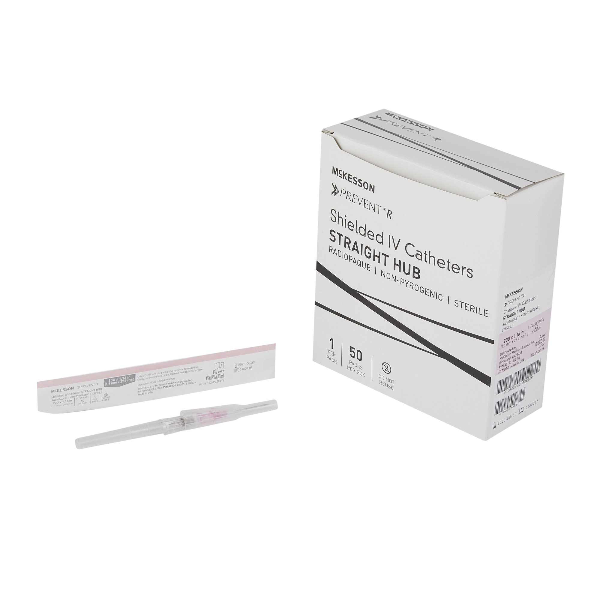 Peripheral IV Catheter McKesson Prevent® R 20 Gauge 1.16 Inch Straight Hub Non Blood Control Push Button Safety