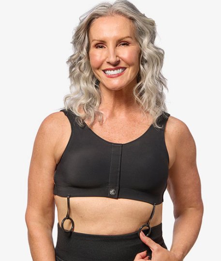 Post-Surgical Bra Elizabeth Pink Surgical Bra® 42 to 45 Inch Chest 2X-Large Black Front Hook and Loop Closure Drain Holders
