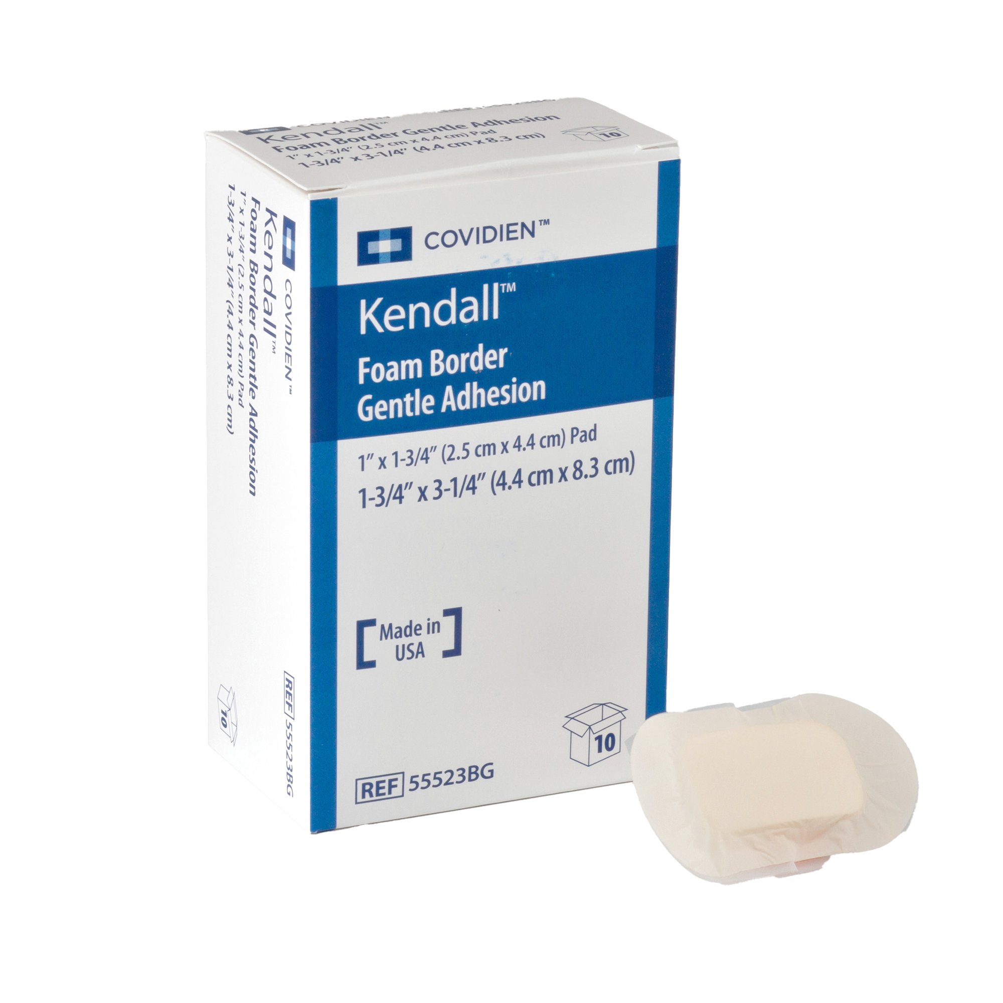 Foam Dressing Kendall™ Border Foam Gentle Adhesion 1-3/4 X 3-1/4 Inch With Border Film Backing Silicone Adhesive Rectangle Sterile
