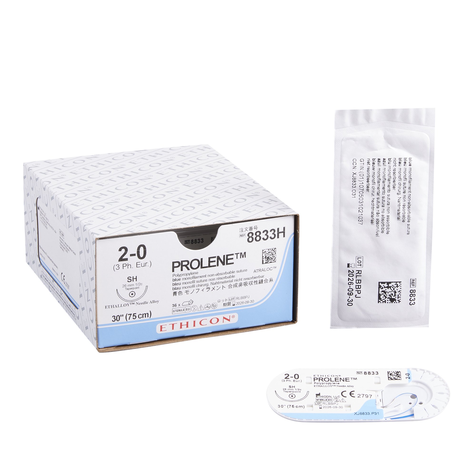 Nonabsorbable Suture with Needle Prolene™ Polypropylene SH 1/2 Circle Taper Point Needle Size 2-0 Monofilament