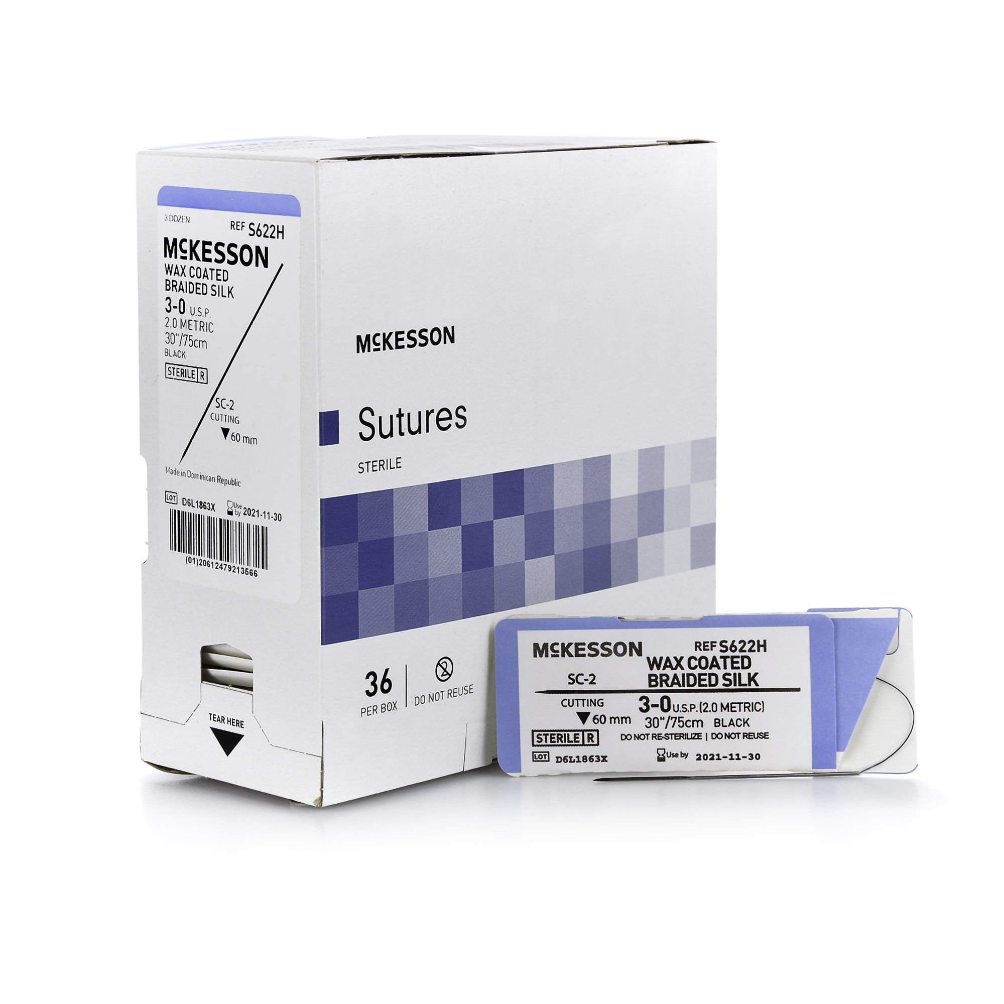 Nonabsorbable Suture with Needle McKesson Silk SC-2 Straight Conventional Cutting Needle Size 3-0 Braided
