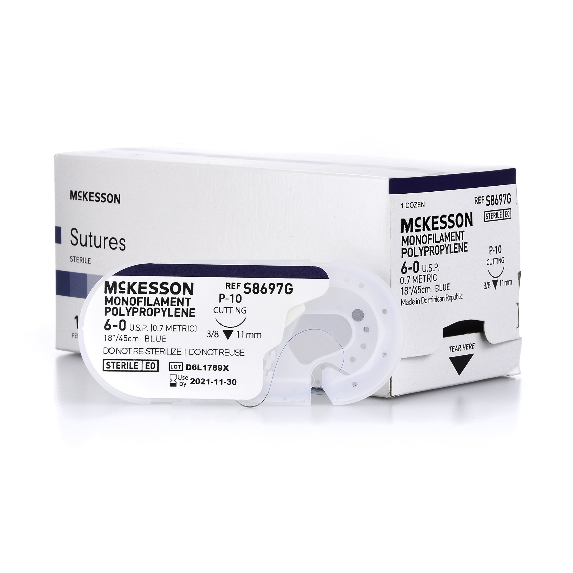 Nonabsorbable Suture with Needle McKesson Polypropylene P-10 3/8 Circle Precision Reverse Cutting Needle Size 6-0 Monofilament